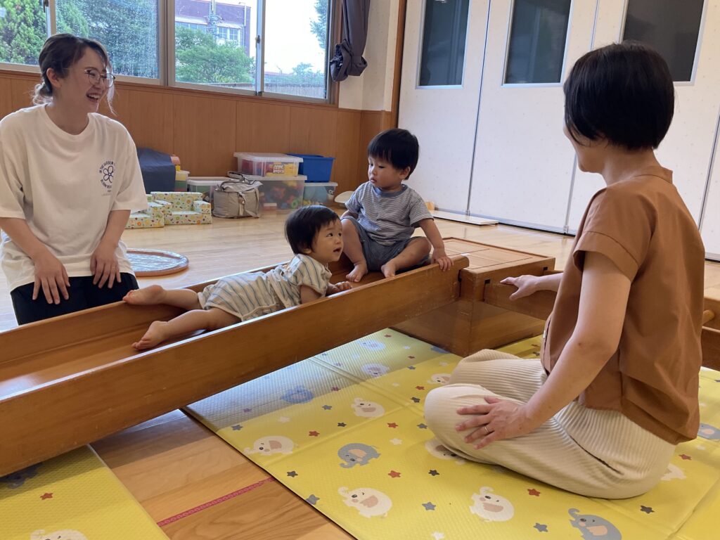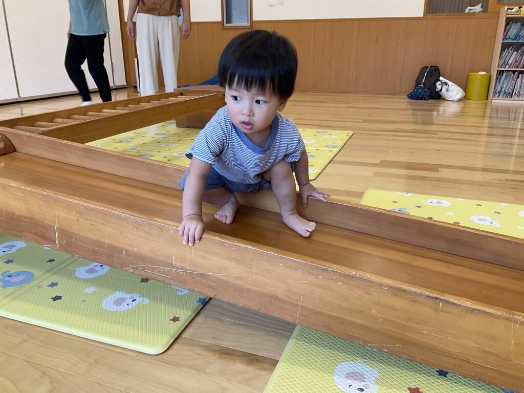 始めは緊張気味だったお友達も徐々に慣れ、自分から巧技台に登ったりすべったり・・・